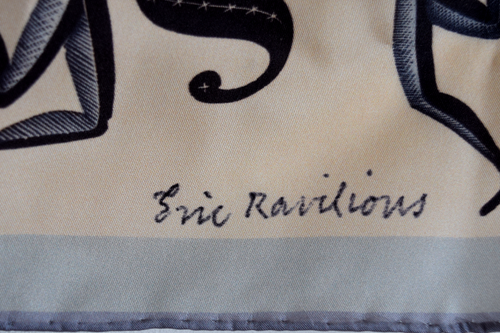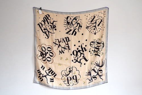 Square silk scarf, featuring a design by Eric Ravilious. The motifs featured are taken from Ravilious' design for the 1933 Lanston Monotype Calendar.