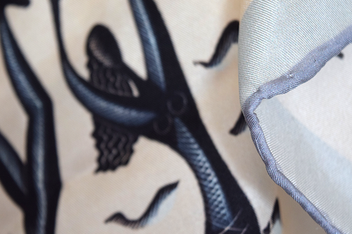 Printed on 100% silk twill, with hand stitched rolled hem.