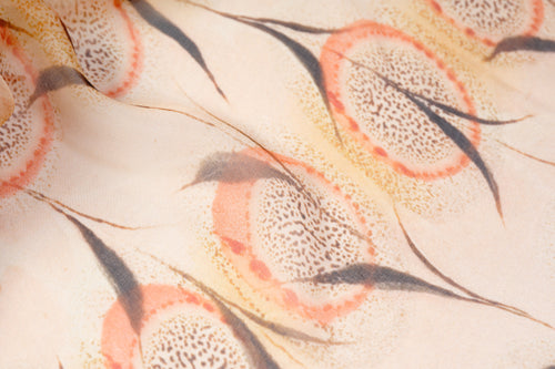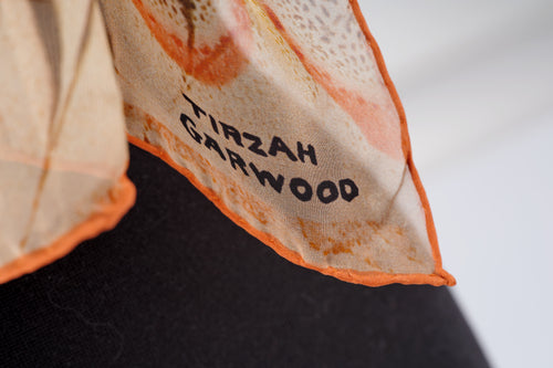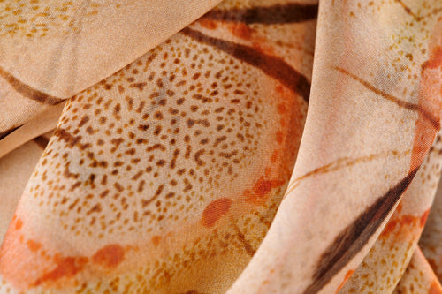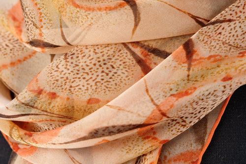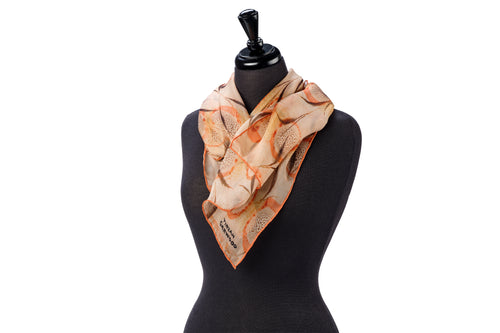 Printed on fine 100% silk chiffon, with hand stitched rolled hem.