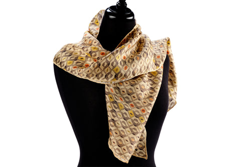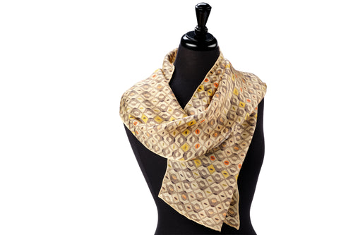 Printed on 100% silk twill, with hand stitched rolled hem.
